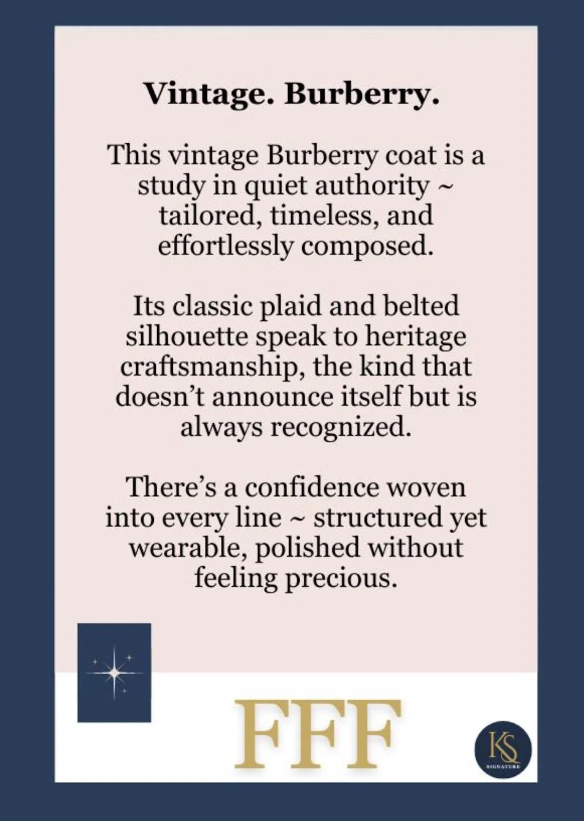 Burberry has long been my favorite high-end brand ~ not for logos or trends, but for craftsmanship that endures.