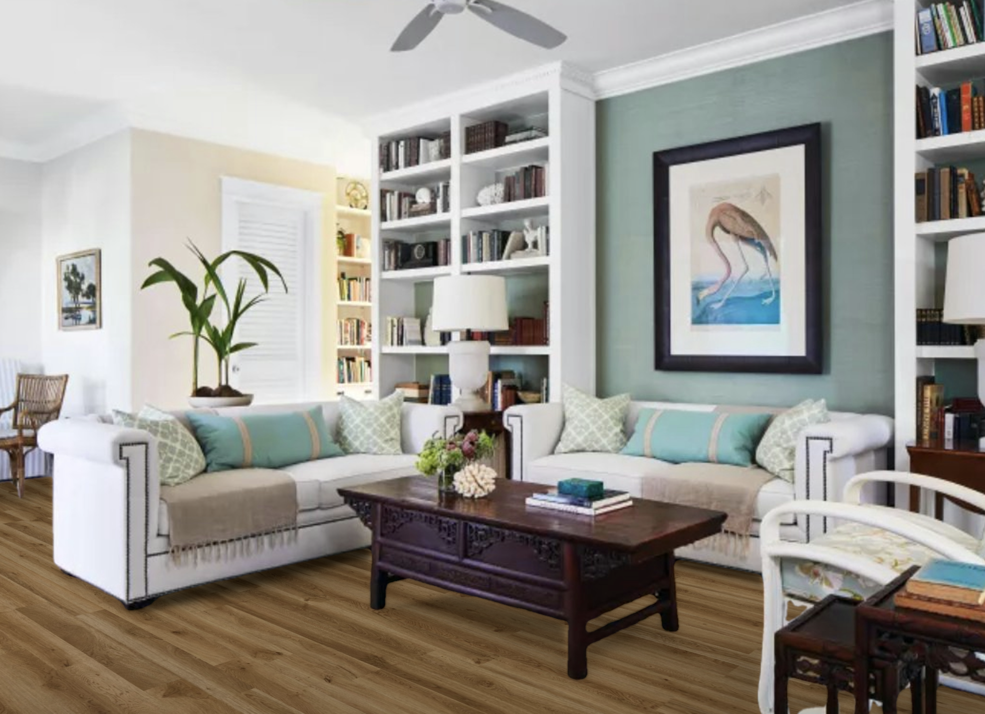 In this example, Engineered Floors – Cultivate in the color Denali anchors the space. This luxury vinyl plank provides:
